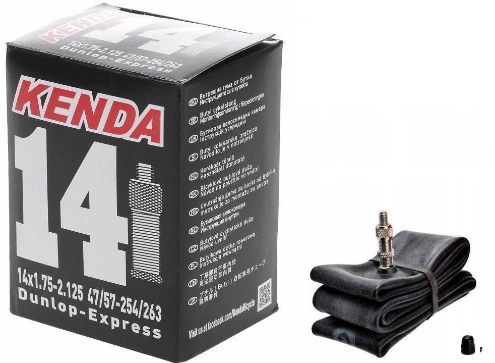 Dętka 14″ 1.75-2.125 / DV 30mm / KENDA• guma butylowa, grubość 0,87 mm.• 14×1.75-2.125 47/57-254/263• wentyl Dunlop, długość 30 mm.• pakowanie kartonik (20g.)• waga: 94 g.