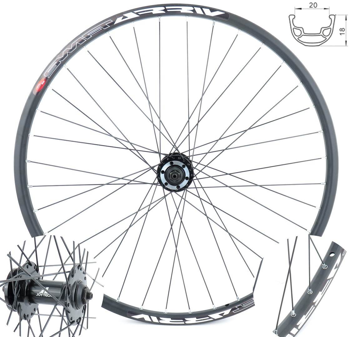 Koło przód 29″/28″ (622mm)Obręcz STARS J20S aluminiowa wzmacniana czarna nitowanaNyple mosiądz CN srebrneSzprychy czarne nierdzewne CN SPOKE Piasta JOYTECH JY D761 czarna, tarcza 6 śrub Szybkozamykacz QR w zestawie